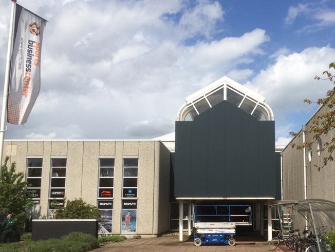 Restyling gevel Sports Business Center, het is een zeer fris aangezicht geworden en het licht naar binnen behouden.